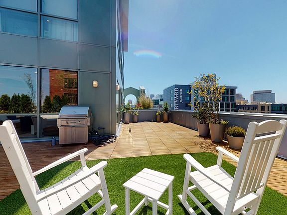 Masterfully crafted with over 1,500+ SF of private outdoor deck space. Breathtaking views, inside and out, with ceiling-to floor glass windows that surround this corner Penthouse. Chef's Kitchen with oversized center island, custom cabinetry, stone countertops, and high-end appliances. Living area features a walk-out deck with self-irrigating gardens, gas grill, and wood flooring. Upper level has master and second bedroom with soundproof windows, majestic views, and custom walk-in closets. Spa-like master bath with separate soaking tub, steam shower, and dual vanity. Guest baths with custom tile work and finishes. Audio/visual integrated with lights, window treatments, and temp control. The Strada has 24-hour concierge, private fitness center, deeded storage, and an underground valet parking garage. An iconic location, next to The Hub on Causeway, TD Garden, North End, Waterfront, Faneuil Hall, Downtown Boston, and all major transportation points.