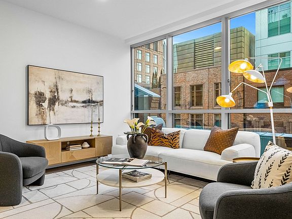 Another stunning renovation awaits you in this turnkey 2-bedroom, 2.5-bath home, ready for you to move right in. If space and style top your list, look no further. The kitchen is a showstopper with truffle cabinetry, quartz countertops, built in shelving, stainless steel appliances, a wine fridge, and a spacious peninsula island- flowing into a living and dining area framed by floor-to-ceiling & casement windows. Both bedrooms offer serene ensuite bathrooms, with the primary featuring a double vanity and an oversized shower, while the second boasts its own walk-in closet. Engineered hardwood floors and recessed lighting throughout, two-zone heating and cooling, in-unit laundry, and a half bath off the kitchen make this home as functional as it is beautiful. Welcome home!