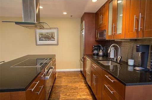 Spectacular 2 bedroom with "Wow" factor views of the Harbor and Historic North End from floor to ceiling windows in every room.Beautifully renovated open kitchen with stainless steel appliances. Great storage space and in unit washer/dryer. Large gut renovated marble bath with double vanity and walk in shower Price includes valet garage parking and use of fitness room. 24 hour concierge. Steps to the Harbor, North End restaurants and public transportation. A must see.