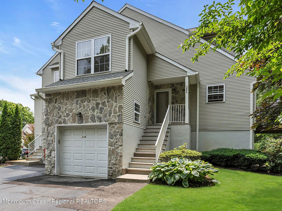 Ownership opportunity in Allaire Country Club Estates. This spacious Devonshire model is a rare offering. The well maintained and updated home is uniquely and privately located. Outdoor spaces back to a wooded area for maximum solitude and privacy. The home offers 3 bedrooms and 2.5 bathrooms on multiple levels. The kitchen is open to the living areas and updated with an island, SS appliances and granite counters. Hardwood floors on the first floor and in the loft area. A finished walkout basement and attached garage enhance this unique home. Many upgrades and newer appliances and mechanicals throughout.