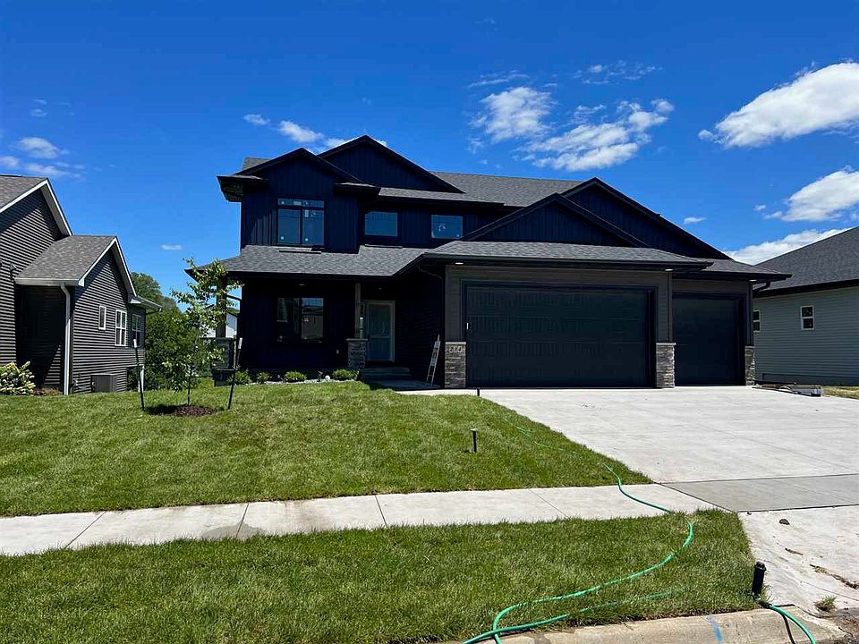 Top selling 'Magical 2-Story' featuring design updates by Blue Sky Developers. Tour this 5 bed 3.5 bath 2-story w/walkout basement in East Iowa City in Stone Bridge Estates Part 8 and see how an already magnificent design can be made better. The 'Magical 2-Story' is every family's dream offering room for entertaining all of your family & friends with thoughtfully designed space for everything. Close to Hoover Elementary & shopping! 1st floor office that could be a bedroom. Open plan w/chef's kitchen, breakfast bar, quartz tops, HW floors, designer cabinets & upgraded appliances. Loaded with custom finishes. Large primary suite w/box trey ceiling & tile shower. 2nd floor laundry. 2 story open foyer. 9' ceilings on main. 1st floor family room. Walk in pantry, mud room. Screen porch. Oversized 3 car garage. Home backs directly up to Green Belt Trail!