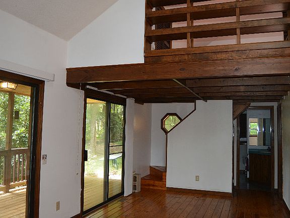 Cute & cozy cabin tucked in the woods! 2 Bed/1.5 Bath PLUS oversized detached 2 car garage with upstairs apartment. Privacy, view and outdoor gazebo. Great room with Gas Fireplace & Wood floors - nice and bright - windows + skylights. Ceiling fans throughout, large covered deck with hot tub. Master bedroom on main floor, upstairs loft with half bath. Detached garage includes work shop area & upstairs apt. with kitchenette & full bath - adding another 700 Sq. Ft. of living space. Plenty of room for friends & family. Minutes from town & convenient to Blairsville & Blue Ridge.
