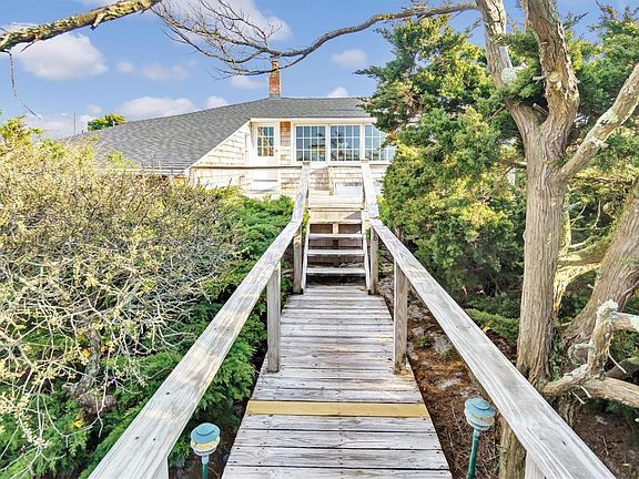 This Quogue Village Year-round Oceanfront home has 3 bedrooms, 3 bathrooms, a large great room with lots of windows & natural light, a wood burning fireplace, cathedral ceilings, central air conditioning and hardwood floors. A long private driveway off Dune Road leads to the house, and one of the nicest beaches in the country; a complete natural setting with ocean views, sounds, scents, native beach grasses and foliage. A recently renovated kitchen includes quartz counter tops, stainless steel appliances, a gas cooktop, double wall ovens and ample counter space. Expansive ocean and beach views. Private. Thousands of acres of protected land on bay side. Property includes two large decks with benches and seating facing the ocean and bay for entertaining and cooking, private walkways to ocean and bay, and a two person+ outdoor shower. A detached two car garage and garden tool shed provide ample storage. Right of first refusal on adjacent property for those seeking a much larger compound. This year round home is ideal as a daily respite with miles of long beach walks under a full moon or bright Jupiter, for catching striped bass, cooking the catch of the day on your two decks or early morning meditating while listening to the birds.