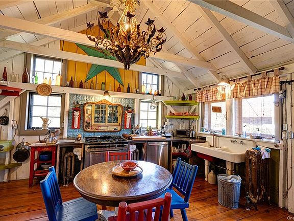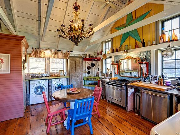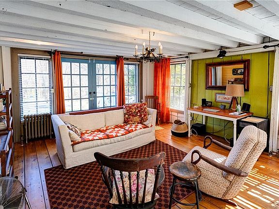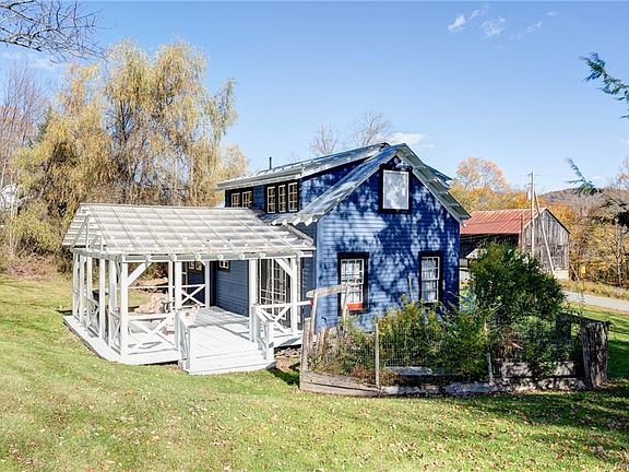 Welcome to this one-of-a-kind turnkey home situated on a quiet country road. The sweet property is filled with charm and includes a wonderful covered back deck as well as a handful of outbuildings, including a super cool A-frame barn. In addition to the many artistic touches throughout the home, it also features gorgeous original wide plank wood floors and a large number of windows letting in an abundant amount of natural light. The owner has put a lot of love into this home by using repurposed rustic materials and painting the interior with a whimsical color palette. A commercial kitchen range and a luxurious 2-headed marble tiled shower are some nice, newer additions. With over five acres of land straddling the road, this property offers privacy yet is close to the most desirable towns of Sullivan County including Callicoon with the fabulous restaurants, shops, and largest farmer s market in the county. The home has access to broadband internet and excellent cell service.