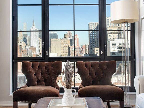 Please inquire for a video tour of the apartment. Residence 11C at 234 East 23rd Street is a mint condition, high-floor three-bedroom with three exposures, uncompromised natural light, impressive views of the Chrysler and MetLife buildings and timeless finishes throughout. This 1,600 square foot home presents a unique opportunity to purchase a full service Gramercy condominium built with the highest level of quality and construction. Upon entering the home, solid white oak floors and floor-to-ceiling casement windows set the tone for the bright and airy aesthetic that runs throughout the space. The C line is optimally laid out with bedroom quarters in the back and a gracious entertaining space in the front of the home, with distinct areas for living and dining. Enjoy all day natural light and sweeping landmark views from every vantage point in this sprawling apartment. The open kitchen is equipped with quartzite countertops, silver travertine stone tile backsplash, a large island and a suite of professional grade appliances including an integrated Sub-Zero fridge/freezer, Bertazzoni oven/gas cooktop and a Bosch dishwasher. Adjacent to the kitchen is a windowed dining area that is open yet setback from the rest of the living area. There is also a sizable pantry area with beautiful millwork included in the kitchen. Through the entry foyer and towards the rear of the home are three large bedrooms. Thoughtfully designed, the king-size corner master bedroom features a spacious walk-in closet that is fully built out and an elegant en-suite bath with a walk-in shower framed with casement doors, a custom-patterned stone floor, Waterworks fittings and an elegant vanity crafted with Carrera marble. The second and third bedrooms also offer floor-to-ceiling windows, generous closet space and a second large bathroom. An additional powder room and Bosch washer and dryer complete the home. 234 East 23rd Street is one of Gramercy's newest, full-service condominiums. Comprised of just 57 homes with only 3 units per floor, the building offers residents a full-time doorman, a state of the art gym facility, a beautifully landscaped roof deck with an outdoor kitchen, a residents lounge/library with billiards, bike storage, private storage and a full time resident manager.