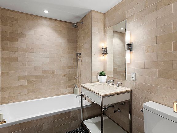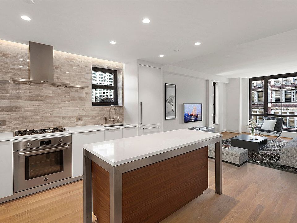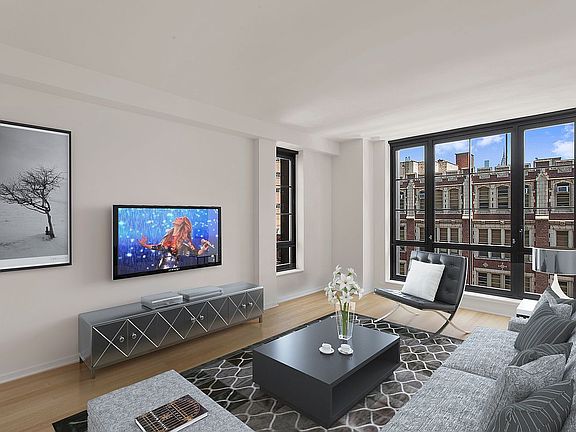 Live in the heart of Gramercy in this spacious and modern one-bedroom, one-bathroom apartment at 234 East 23rd. The floor-to-ceiling industrial style, large square casement windows coupled with beautiful solid white oak floors, create a warm, comfortable, bright, and airy atmosphere with a cool vibe. The apartment boasts an open living/dining room where functionality and beauty tie together seamlessly in the design of the kitchen with a unique, movable island and an open stainless-steel shelving system. The gourmet kitchen features professional-grade appliances, including a Sub-Zero fridge/freezer, Bertazzoni oven and gas cooktop, GE microwave, and Bosch dishwasher. There are also generous kitchen pantry storage cabinets, quartzite stone work surfaces with a silver travertine stone backsplash, and Kohler sinks and faucets. Each apartment in the building is equipped with a Bosch washing machine and dryer. The master bedroom offers a luxurious bathroom with a Kohler bathtub, stone tiled floors and walls, performance polished chrome Waterworks fittings and a custom-made vanity crafted with Carrera marble.