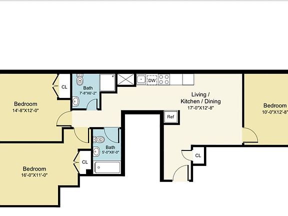 * Huge 3-Bedroom, 2-Bathroom Layout