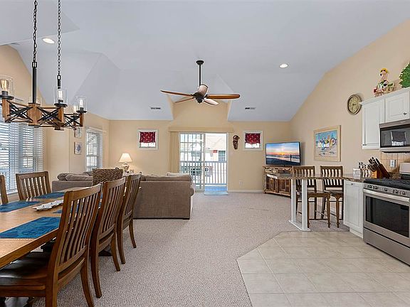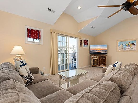 **There is a signed contract 4/14/21 and the owner requests that there be no more showings.** This upper level 4 bedroom, 2 full bath condominium is simply stunning! The main living level consists of a great room, 3 bedrooms, and 2 full baths. There is a very large upper "loft" level 4th bedroom/TV room. This condo is larger than others that you have seen. You will be impressed when you walk into the spacious "great room" with its soaring cathedral ceilings and "open concept" living area. Walk out on to the large sunny front deck - it spans the width of the home and offers nice views of the ocean, the beach, the tallest rides on the boardwalk, and the Friday night fireworks too! There is a second private deck in the rear of the home, accessible from two of the bedrooms. The large bright bedrooms have cathedral ceilings. This home has been comfortably and tastefully furnished by very attentive owners. There are many updates throughout, such as custom light fixtures, stainless steel appliances, fresh paint, and all new furnishings. This unit has all the features that you would expect in a luxury vacation home - central air, gas heat, ceiling fans in all rooms, a separate laundry room, two car reserved garage parking, a private garage storage room for your beach gear, a hot/cold enclosed outdoor shower, a fully equipped kitchen with all appliances and amenities, etc. etc. The list goes on and on! This Association provides gas grills in the back yard and a summer trash/recycling service to bring the cans to the curb - the cost of which is included in your condominium dues. The Association is stable and solvent with a mix of renting owners and non-renting owners. All owners are current with dues payments; there are no delinquencies. The roof on the building was replaced in February. This home will be transferred fully furnished, as seen, as shown. There are no exclusions. The condo is pet friendly for owners and renters - up to two pets per unit.