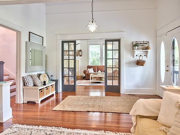 A rare jewel in "small but special" Rutledge. C 1891, the Bonner-Stapp-Moss home features coffered ceilings, pocket doors, four fireplaces and gleaming heart pine floors. Two parlors on the main level, plus formal dining room, kitchen, and expansive master suite. Upstairs are two bedrooms and a shared bath. The property includes nearly 8 acres, with fenced pasture, a pair of 20x40 outbuildings, and a chicken coop. The vibrant Rutledge downtown is just a short stroll away - enjoy Friday night concerts, farmer markets, health and wellness establishments, and restaurants. Hard Labor Creek State Park is nearby, with a golf course, trails, and Lake Rutledge.