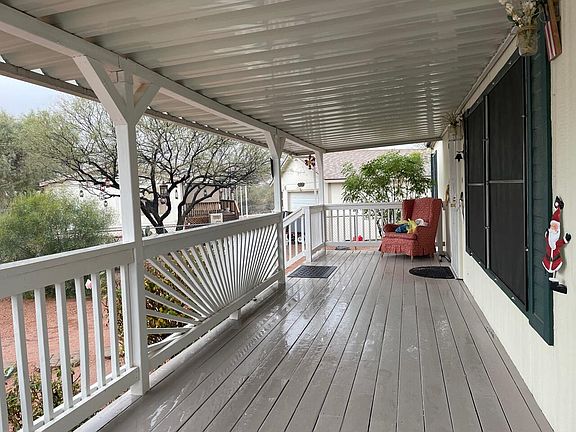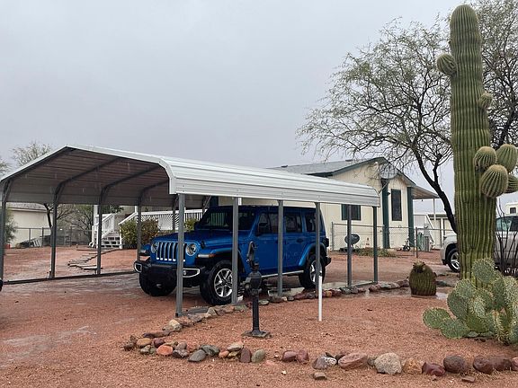 Convenient central location! 6 miles to Roosevelt Lake -Mountain Views! Well maintained 1997 28x 58 Palm Harbor Manufactured with front covered Deck and full length rear covered patio. 23x 30 Ft triple Garage RV parking space Detached shop building+ Detached storage with garden plot. Chain link fenced back yard Double steel carport. Two bedroom split floor plan with open living dining family room . Kitchen features breakfast bar and all appliances including propane range+ washer and dryer. Propane fireplace HVAC & hot water heater approx 2 yrs 2 apricot fig orange lemon tree and grape vines.