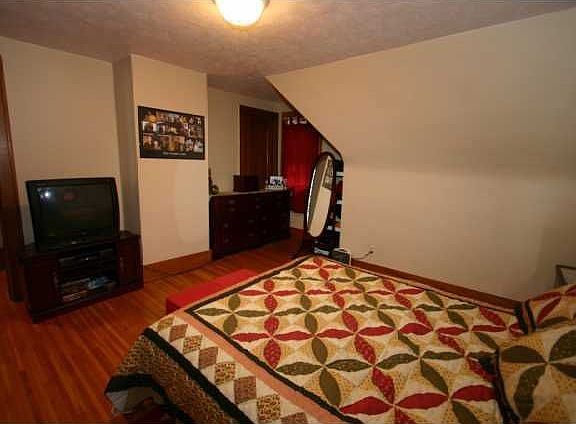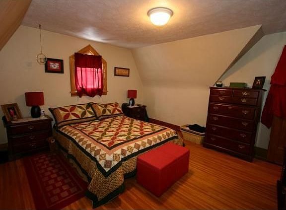 Charming Cape Cod home, Beautiful hardwood floors with gunwood trim. Woodburning fireplace in living room for cozy evenings. Modern kitchen with cherry cabinets, bedroo on first floor and 2 bedrooms on second floor. Unfinished attic area on second floor could have full second bathroom. Skylight has been installed in attic area. Recent circuit beakers and service. Open front porch was rebuilt with bead board ceiling and Mahogany flooring. Great for summer evenings. Yard is large enough for adding garage. Fenced rear yard.
