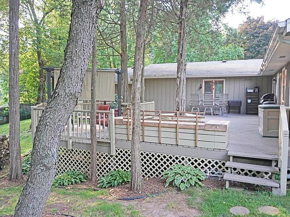 Nicely updated ranch home on a scenic wooded lot in the City of Delafield! Enjoy this park-like setting with fenced-in back yard and huge private deck. Interior boasts living room with large front windows, hardwood floors, and beautiful fireplace. Open dining area with Cream City brick accent wall. Kitchen has skylight and appliances included. Updated main bath. Large family room features adjoining office nook. Partially finished lower level. A short walk to neighborhood park!
