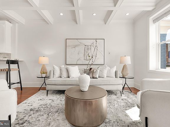 Merely two blocks from Union Station in the heart of vibrant, tidy Stanton Park is 234 F Street NE, an original 1922 DC rowhome embodying the very essence of the city. Comprehensively modernized beyond its light brick exterior to suit the demanding requirements of present day urban lifestyles, a smart, fenced-in front yard complements the contemporary light fixture, awning, and welcoming front door to evoke a sophisticated curb appeal. Inside, the main level’s floor plan is a true open concept, augmented by tall 9 foot coffered ceilings to create an ethereal sensation throughout. Crown moldings, Santos mahogany floors, and sleek open railings along the staircase are refined finishes emphasizing quality. The kitchen is uncompromising with its complete suite of full-sized stainless steel appliances, white shaker and glass cabinetry, thick edge Carrara marble countertops, and stylish modern fixtures. A generous dining area with direct outdoor access and a convenient powder room complete the main level. On the upper level, Mahogany floors and tall ceilings carry through, while the sky-lit landing branches off to two generous bedroom suites. Each is ample in scale, flooded with natural light, and features a luxurious Carrara marble-clad ensuite bath. A third bedroom and full bath are thoughtfully placed in the lower level, where direct exterior access enables a seamless au pair apartment or additional income-generating opportunity. Adjacent is a recreation area, marble-topped wet bar, and stackable, in-unit laundry. Out back, the deck descends directly from the dining area into a cozy, fully-fenced and private patio, ideal for outdoor entertaining or dining al fresco. Recently updated utilities complete the offering with peace of mind. Easily walkable to trendy shops, eateries, parks, and schools, the home is a commuter’s dream and represents the forefront of polished, no-compromises urban living.