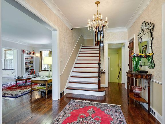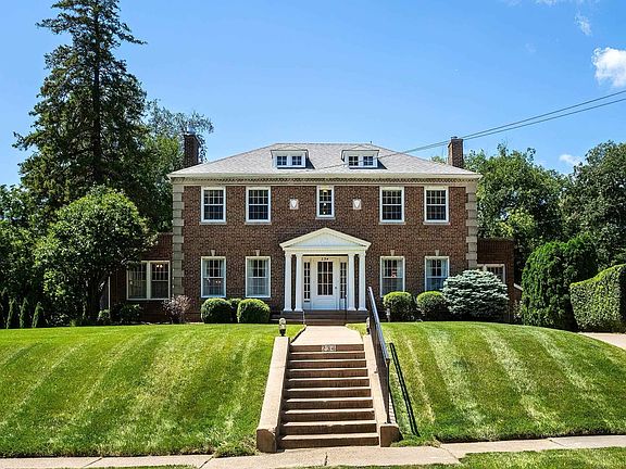 This stately home in the heart of McClellan Heights has been in the same family for 86 years. The 1935 Federal style brick home is situated on a deep level lot that backs to a wooded ravine. Main floor features a center entry with large foyer; gracious living room with gas fireplace and built in bookcases; sunroom with access to the tile patio; formal dining room with built in china hutches; kitchen with plenty of cabinetry and lovely breakfast room; and powder room. Upstairs are two master bedrooms with en suites; two additional bedrooms; hall bath; built in linen chest; and access to the full attic for additional storage. The finished basement includes the coolest rec room with stone fireplace and wet bar; laundry area; and an abundance of storage space. Additional amenities include elegant chandeliers, 10' ceilings, huge crown moldings, original built ins, gorgeous hardwood floors throughout, original glass subway tile, Italian Carrera marble, and original solid 6 panel hardwood doors with glass knobs. An attached 2 car garage, detached 2 car heated garage with A/C and a 12 x 12 storage shed round out this fantastic home.