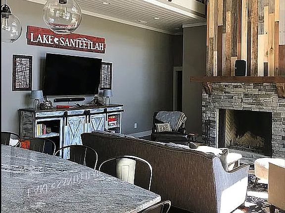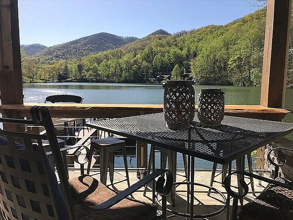 This is a one of a kind, custom built home on Lake Santeetlah. The 1972 sq ft home has 2 bedrooms, 1 bunkroom able to sleep 4, 2 full bathrooms and a bathroom. There's a large storage area in the rear of the house to store all your lake toys and extras. There's an owner's closet for anyone looking to continue renting the unit through Airbnb or VRBO. Interior is finished with reclaimed barn wood sourced from UT which covers feature walls in the 2 bedrooms, wraps the walk around fireplace and featured in the kitchen's range hood. The 50” fireplace is a perfect spot to hang out with family and friends and play games when not out on the lake.Hand picked wood and brick tiles are featured in BOTH bathrooms with Pottery Barn vanities. Stainless steel appliances included in the kitchen (dishwasher replaced summer 2022). Entire exterior was built/designed to be maintenance-free. Hardi board was used on all exterior surfaces and composite decking was used on the deck, ramp and dock. HVAC has been serviced regularly by local company. Pest Control is also serviced by the local Terminix. House comes fully furnished with everything you need to start enjoying your new lake home!