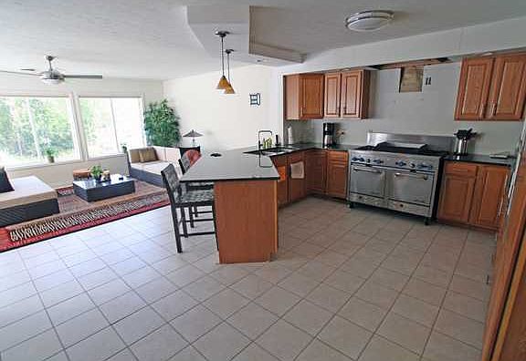 Stunning contemporary home upgraded w/open layout perfect for entertaining or possible in law. Wall to wall glass and 3 sliding doors to deck overlooking breathtaking pool and grounds. High tech mechanics, porcelain tile, a must see home!