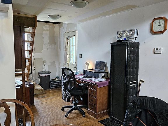 This unique, cute home has all the major updates done , just needs walls sanded and painted! Laundry on main level, updated furnace, water heater, electric, plumbing, The home was gutted to the studs and made into open floor plan living with all new drywall! Large loft 2nd bedroom. Foyer being used as an office, and electric panel in cabinet of Primary bedroom. Additional small box in basement. Large back yard, and ready for your finishing touches! Seller is open to finishing some things, But being sold "as is"