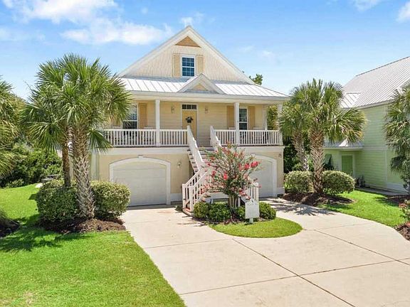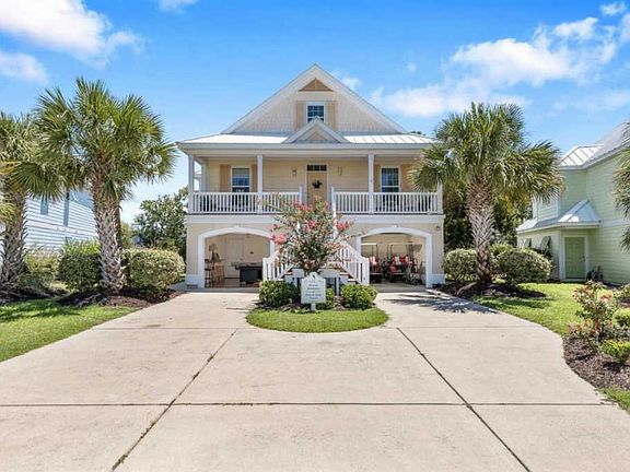 This is a must see fully furnished, 5 bedroom, 4.5 bathroom home located in the gated beach community of Bermuda Bay. This raised beach house features tall vaulted ceilings throughout the living room & kitchen/dining room combo. The home comes fully furnished, and includes 2 golf carts with the purchase. The kitchen is equipped with all appliances, corian countertops, and upgraded cabinets, and convenient breakfast bar. Enjoy the view on your large front porch or back porch balcony, overlooking a private pond. The home provides 2 master suites, with large bathrooms and walk-in closets. Enjoy the 2nd downstairs spacious living area, equipped with full kitchen, 2 more bedrooms, bathroom, and washer/dryer. 2 golf carts will convey with the purchase of the home. Enjoy all the amenities that Bermuda Bay offers. That includes indoor and outdoor pools, kids splash pad, hot tub, clubhouse, playground, dog park, shuffleboard, gym, and convenience of a private beach access. Only a golf cart ride to all restaurants, shopping, beach, & waterpark the area has to offer.