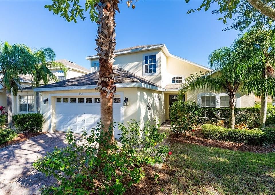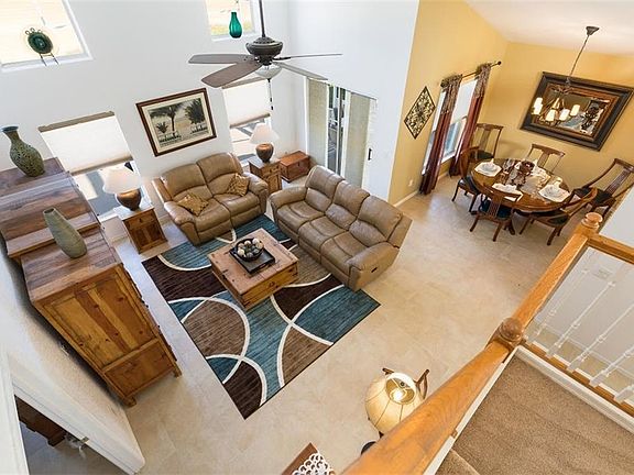 Beautiful 4 bedroom 2.5 bathroom home with golf course views from the pool deck, new tile downstairs and carpet upstairs throughout the home. Kitchen has granite counter tops, stainless steel appliances, home is open plan with patio doors leading out to covered lanai, large pool deck with plenty of room for outside activities and is perfect for family and friends getaway's. Remodeled bathroom upstairs with new bath, tile granite counters! Highlands Reserve is a highly sought after golf community ideal for short term vacation rentals, long term or your forever home within 15 minutes of Walt Disney World and close to shopping, restaurants, golf and so much more! Home has owner bookings over 20 weeks for 2019 to convey if used for short term rental. Book your appointment today!