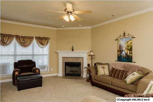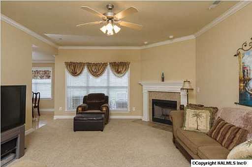 Wonderful Semi-open floor plan. New carpet--home is in excellent condition. Formal dining room/Office. Isolated Master Bedroom. Master Bath has spa tub and separate shower. Crown molding in all main areas and the Master. Lots of kitchen cabinet and countertop space. Breakfast bar and Breakfast Room too! Patio off the kitchen looks out on the quiet back yard--no neighbors directly behind. Only 25 minutes to Redstone/Research Park, 20 Min to downtown. Mountain Views! 13 Month Home Warranty 10/11/13