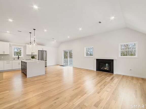 Stunning New Construction Modern Ranch Near Candlewood Lake. Welcome to this home built with exceptional quality by local builder. Located in desirable Great Plain area of Danbury, this home is perfectly situated on a .96-acre lot. 2,150 square feet of beautifully finished living space, this 4-bed room, 3-full-bath home features a bright, open floor plan ideal for modern living and entertaining. The designer kitchen is the heart of the home, complete with a large center island with waterfall edge, quartz countertops, stainless steel appliances, double oven, and gas cooktop. Custom designer closets are featured throughout the entire home. Hardwood floors span the main level. The Living room impresses with cathedral ceilings and a gas fireplace, The primary suite offers a cathedral ceiling with paddle fan and the bath features double vanities, glass shower enclosure, and heated floors. All bathrooms are appointed with Kohler plumbing fixtures. Lower level has an en-suite bedroom, laundry room with front-loading W/D and custom cabinetry. Family room with patio door to the expansive backyard & oversized composite deck. This home has a 2-car garage, ample driveway parking, a detached 10' x 16' shed w/ electric & lighting, tankless hot water heater, high-efficiency gas furnace, and is generator ready. With easy access to I-84 and shopping. The property has deeded rights to a walking path leading to the lake dock. The home is complete and ready, a rare opportunity.