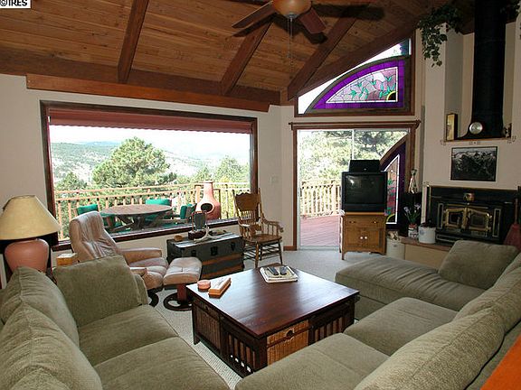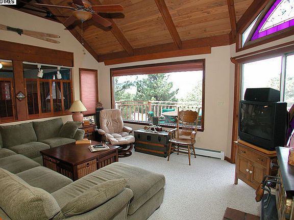 Fabulous mountain views are captured from this freshly painted 2 bedroom, 2 bath home overlooking Pinewood Reservoir. New 50-year roof and appliances,recently updated kitchen, sun room, great deck with electric awnings, fireplace, new carpet and an abundance of character. Two adjacent lots for sale would be ideal for building spec homes while living here. Buyer to pay $700 water assessment.