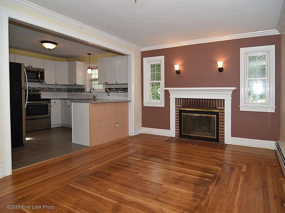 Renovated ! Come see this 3-4 bed Cape Cod style in the Longmeadow section of Warwick Neck. Brand new white kitchen with Shaker style cabinets, granite counters , new stainless steel appliances and ceramic tile flooring and backsplash.. Open first floor layout. There is also a brand new custom tile bathroom and a new half bathroom with completely tiled walls and floor. Good sized bedrooms. New front entry door and storm door. Crown molding in living and dining rooms. Refinished hardwoods in every room. Solid wood interior doors and trim. Lots of closet space including eave storage. New lighting fixtures. Roof is one layer of architectural shingles that is only 2 yrs old. Very young gas baseboard heating system. Exterior is vinyl sided with vinyl windows. Brand new front staircase with vinyl railings and trex decking. Clean, dry, full basement. Fireplaced living room. Nice rear and side yard. Rear abutts wooded section. Large 2 car garage that was recently vinyl sided and also has new roof. Walk to the end of Grove Ave to arrive at Narragansett Bay ! Agent owned.