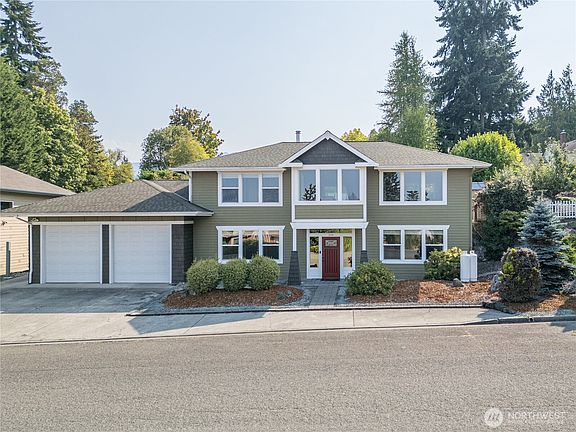 Breathtaking views of the Strait of Juan de Fuca, Mt. Baker, and ships in the harbor set the scene for this Port Angeles gem. The open floor plan highlights a spacious living room and chef’s kitchen with quartz island and propane range, perfect for gatherings. Generously sized elegant primary suite offers a soak tub, walk-in tile shower, large vanity, and walk-in closet. Step outside to a backyard retreat with a hot tub and concrete patio for relaxing & entertaining. A cozy wood stove downstairs for added warmth that only wood heat can offer. Oversized extra-long 2-car garage with loft provides ample storage. All this in the heart of Port Angeles, close to Olympic National Park headquarters and all city amenities.