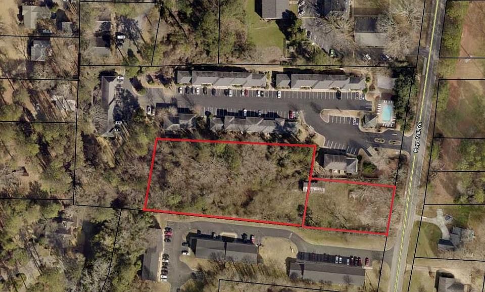 Level double city lot with a total of 2 acres. Located across the street from Hays Mill Greenbelt trailhead. Walking distance to college, shopping and eating. Property includes a barn and a retention pond. Backs up to SOMA Apartments. Zones Multi. Lots of opportunity!!!