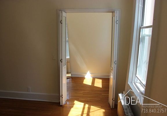 ACTUAL PHOTOS Property ID: 235886 Price: $2,800 Neighborhood: Boerum Hill Bedrooms: 3 Bathrooms: 1 Building Features: Prewar Description: There is plenty of room to spread out in this floor through apartment! The front room with French doors and ceiling fan gets fantastic morning light. This room has tremendous original details including a beautiful decorative fireplace, tin ceiling and a large alcove that can be used as a walk in closet (with another closet!) or as an office space. This space has decorative windowed doors. If converted into a bedroom this room is large enough for a king sized bed with furniture. The interior space with a double wide closet can be used as a living area with a kitchen alcove that has its own window. The short hallway has another double wide closet leading to the both back bedrooms. The bedroom on the left has its own closet, shelves, decorative fireplace and ceiling fan. The back bedroom on the right is also large enough for a queen sized bed but takes advantage of the closet in the hallway outside its door. Call me today for more details and to arrange a showing.