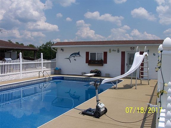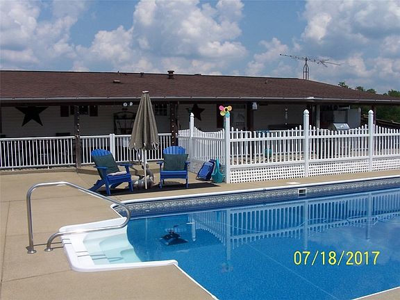 Move in condition, newer carpeting, interior wood doors, lots of closet space, gas log fireplace in the living room, 1st floor laundry off of the kitchen, covered front porch, rear covered patio that can be used for covered parking, hot tub, beautiful country setting with a breath taking view, enjoy the summer in the 16 x 36 inground pool, with slide, diving board, walk in steps, pool house with living area and another full bath, storage buildings, play house, concrete driveway