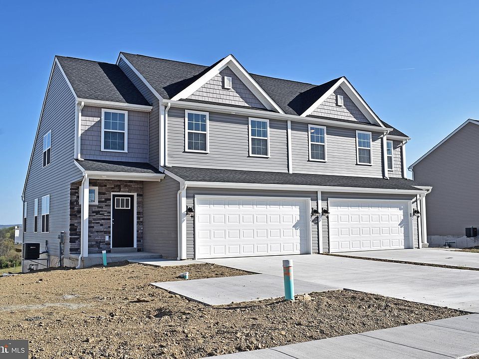 Ready for Occupancy! Welcome home to the Mulberry, a beautiful semi-detached design featuring a first floor primary suite, two car garage, and gorgeous curb appeal slated for a Late Spring completion! The attractive varying wall design and reverse gable is sure to capture your eye with vinyl shakes and stone accents. With just over 1,700 square feet the Mulberry includes everything you want in an efficient and modern layout. Easily store your car or create a personal gym space/work area in the spacious two car garage. Just inside access the laundry closet and kitchen. Easily work in the open kitchen that features ample counter space, including a breakfast bar overlooking the dining room. Serving meals has never been easier! Tucked behind the kitchen and dining room is a large great room with an open ceiling. Quietly retire to the first floor primary suite that includes a walk-in closet and full bathroom. Upstairs, the Mulberry is completed with two additional bedrooms, one including a quaint study area.