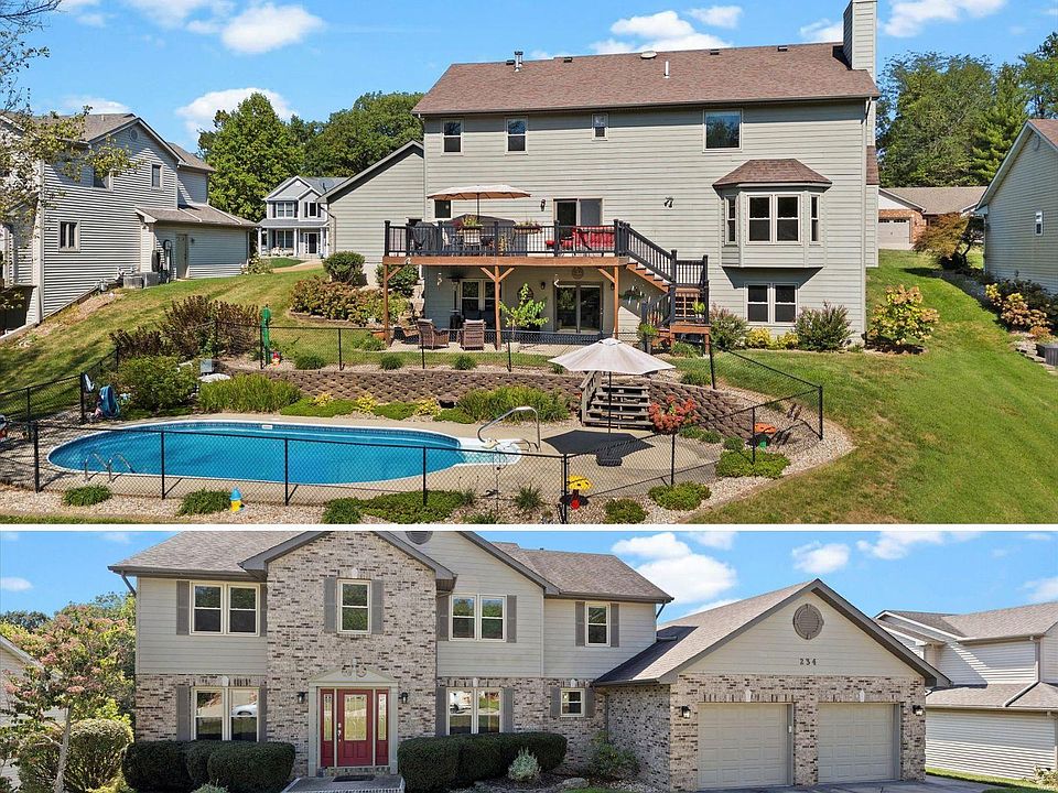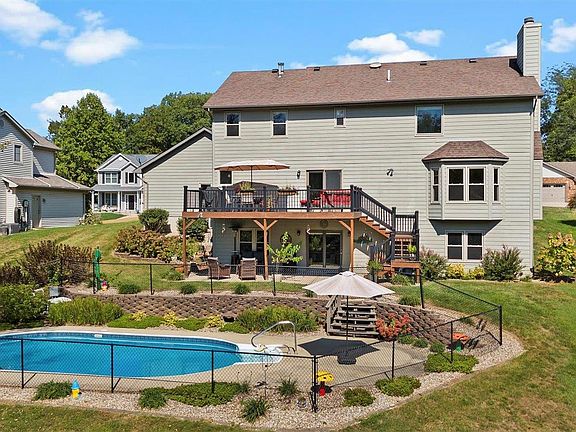 Impressive 2-story home nestled on nearly half an acre in the heart of Collinsville! Spread out in this 5 bedroom, 3.5 bath beauty with nearly 4,000 sq ft of living space. Dual staircases lead upstairs to four inviting bedrooms and a guest bath. The recently updated primary suite is a true spa experience with a gorgeous glass enclosed shower, custom cabinetry, radiant heated floors, and a beautifully organized closet. Enjoy family gatherings in the formal dining room or unwind in the large great room that opens to the gourmet kitchen with quartz counters, oak cabinetry, newer vinyl plank flooring, and SS appliances. The versatile main floor “flex” room is perfect for an office or play area. Step outside onto the newer composite deck overlooking the stunning inground pool with wooded backyard. The lower-level walkout offers a cozy rec room, an additional bedroom and bath, and a spacious patio for even more outdoor enjoyment. Roof-2012, HVAC-2017, Tankless WH & windows-2019.