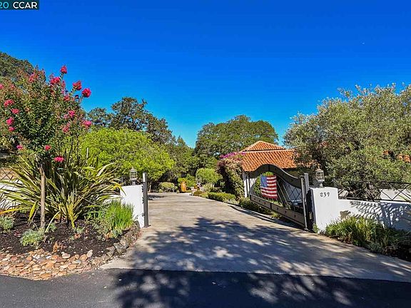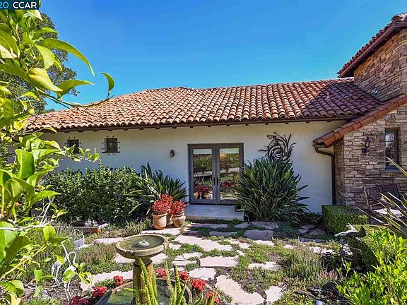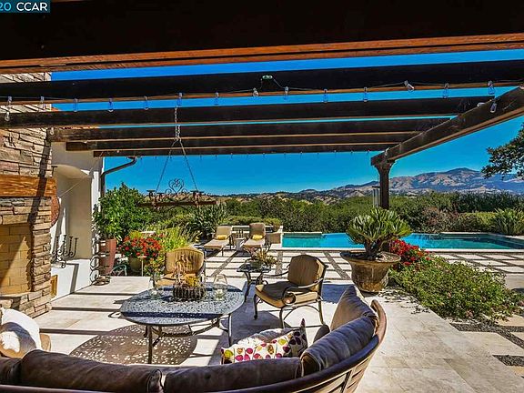 One of the premier lots in Danville. Unsurpassed views of Mt.Diablo and the entire San Ramon Valley. This custom built Mediterranean Villa was built in 2007 and extensively remodeled in 2023. Authentic materials used throughout construction with antique interior doors, custom cabinetry, copper Japanese soaking tub, interior plaster walls, curved ceilings, copper gutters, and hand-made Mexican tile roof. Travertine floors in covered patios overlooking the infinity pool and spa. Outdoor entertainment areas with gas fireplace, patios, lawn area, fire pit, bocce ball court, fruit and olive trees, vegetable garden area. Enjoy the unsurpassed views from the infinity pool and spa. Master bedroom suite with fireplace, steam, sauna, & huge walk in closet. Gated neighborhood and gated property with circular driveway.