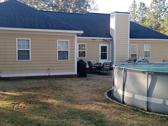 What a GORGEOUS find in Lee County situated on a SPACIOUS and BEAUTIFUL WOODED .80 lot at the end of the subdivision in a private location. Open and wide foyer that opens up to a large great room with a fireplace that is adjacent to the open concept kitchen with tons of cabinets and countertop space. New tumbled marble brick pattern backsplash, new paint with a modern grey paint. Large island with a downdraft stove/oven in the center with breakfast bar and seating for bar stools. Spacious eat-in kitchen dining area in addition to the spacious breakfast bar. Split floor plan design with a HUGE master suite with a sitting area that leads into a LUXURY master bathroom. There is a a corner tiled shower, double vanities and a corner jacuzzi tub with tiled tub surround. Gorgeous tiled floors and custom cabinets. Spacious guest bedrooms with a spacious guest bathroom featuring a tiled shower/tub surround. The 4th bedroom was the formal dining room and is now utilized as a 4th bedroom. It would be easy to convert it back to the original dining room or make a formal 4th bedroom with a closet added. Laundry room that is spacious and adjacent to the side garage entry garage. The garage is oversized and features custom shelving for clothing and organizational racks. Above ground pool with full filter system that stays with the home. This home is one you don't want to miss! Owner must relocate so come see this gorgeous home today.