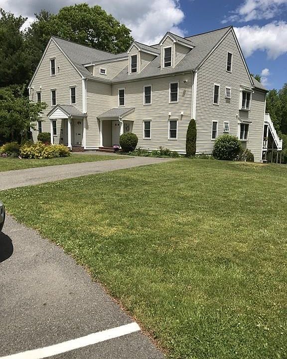 Great 2 floor unit in small complex. Set back off road on 5+ acre parcel of land. Open floor plan with 1200 square feet of living area on the first floor. First floor offers 2 bedrooms and 2 baths with living-dining area and open floor plan to kitchen. Hardwood flooring in living-dining and kitchen. Wall to wall in bedrooms. Tile in bathrooms. Kitchen has upgraded cabinets, granite counters , attached island and pantry. Slider off living room to deck. 2nd floor is finished with 800 square feet for family room/play room or office. 2nd floor has an unfinished bathroom. Located near shopping, restaurants, commuter rail and 15 minutes to Rte 3. Please note this is a 2nd floor unit.