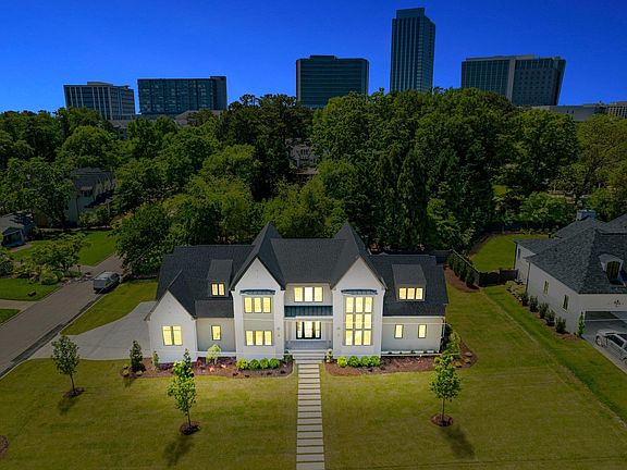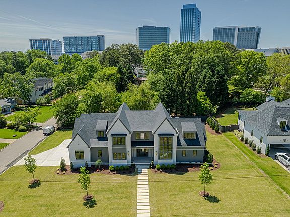 LOT CAN ACCOMODATE A POOL! Walk to North Hills where you can enjoy shopping, dinner, grocery, or a day at the spa. Gorgeous light-filled transitional home built by award winning Raleigh Custom Homes. Located on a beautiful .46 acre lot in the hottest location in North Hills.  You can't beat the flexible floorplan. Light & Airy Owner's suite w/two WICs and a Study or Guest Suite are both located on the 1st Floor. Two phantom screens enclose the outdoor entertaining porch which connects to the living room through a 24' slider. Passthru casement windows open from the kitchen to the grilling area. Sep. scullery w/2nd dishwasher & refrigerator. Two entrances from the garage for guests or MIL. Two laundry rooms, a gym, a bonus room and 2nd study upstairs. So much flexibility.  Finished out with high end appliances & wonderfully chosen designer lighting, flooring & tile selections. Car Charger installed in garage & home is generator ready.