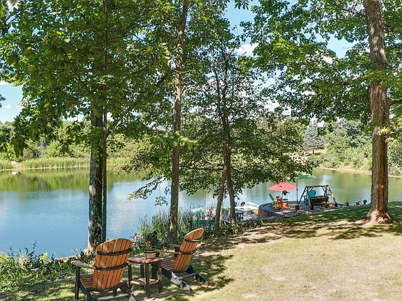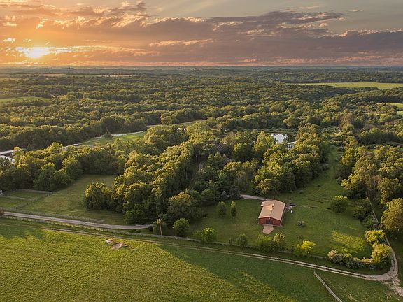Breathtaking, secluded paradise just 20 minutes from Bloomington or Morton. Superior quality 5 bedroom, 6 bath, 6675 SF home. Situated on 20 wooded acres. Every room has amazing views of the private 5 acre lake or the gorgeous park like manicured lawn full of beautiful White Oaks. This one of a kind custom designed home features master suite with fireplace and private balcony overlooking the lake, open concept living/dining/kitchen, walk out basement, huge deck, screened in porch, 2 docks, heated Morton building, horse stable, blacktop drive, 2 HVAC systems, beautiful stone fireplace, and whole house generator make for ultimate comfort. A truly rare property that must be seen to believe.