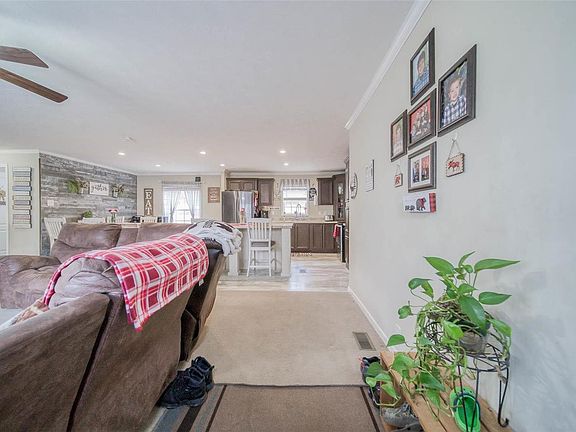 COUNTRY VIEWS WITHIN CITY LIMITS! This open concept 3 bedroom, 2 bathroom home is privately situated on roughly 3 acres. Welcoming you in from the spacious front deck, perfect for entertaining, is the sizable living room filled with natural light. Your eye is drawn to the beautiful weathered shiplap wall in the adjoining dining area. The kitchen boasts a huge center island/breakfast bar, tile backsplash, and stainless steel appliances. The master suite offers a large shower, double vanity, and adjoining office space. 2 large additional bedrooms, a guest bathroom, and a laundry room round out this roomy home constructed with 2" X 6" walls. The shed is large enough to park a car and wired for electricity. This property also offers a chicken coup with electricity and an above-ground pool! SCHEDULE YOUR PRIVATE SHOWING TODAY!!