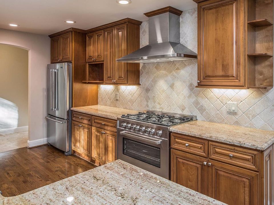 - Kitchen: Countertop - Granite, Exhaust Fan, Hood Over Range, Cooktop - Gas