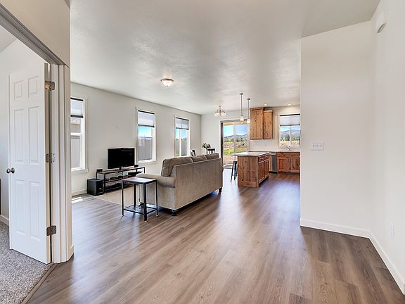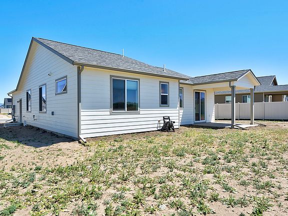 Nearly NEW home built by Olin Construction & just finished in March of 2024, boasts single level living with 1444sf & open floor plan with 9 ft. ceilings. Big windows for a sunny interior, 2 transom windows for additional light, & a sliding glass door out to the covered patio to enjoy the mountain views, including Mount Helena. Spacious master ensuite w/ dual vanity, & large walk-in closet, plus two more bedrooms, & bathroom, AND a bonus room -makes great office area just as you enter the home & enter through the french doors. Kitchen is spacious & has custom built cabinets from Townsend, nice center island, & a large pantry. Custom honeycomb blinds are installed in the entire home. Laundry room leads out to finished double garage. One of larger lots in this great community! You will be proud to call this Home!