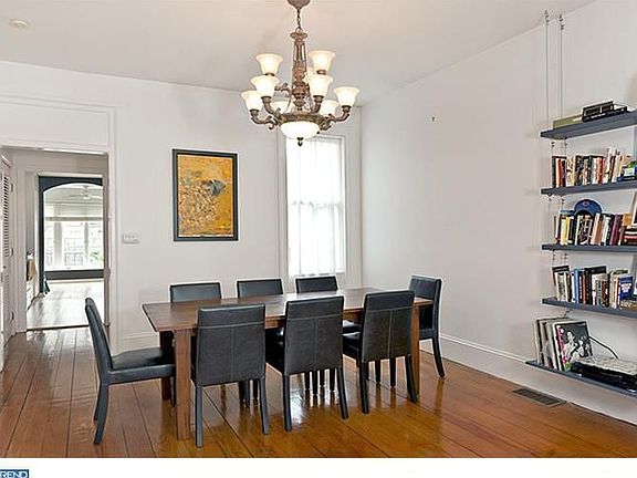 Come experience Mill Hill as the season turns to fall and the tree lined streets welcome you to experience the beauty of these historic homes. You will identify this home by the number on the transom and the colorful front door and the garden along the sidewalk. As you enter you will see the beautiful hardwood floors and high ceilings. The first room you see is the living room which has large windows and where the fireplace takes center stage. The owner has installed custom shelving that showcases his books and memorabilia. Custom framing hangs over the wood burning fireplace. This rooms leads into the dining room with additional custom shelving and a large window. The stunning double drum lights over the dining room table highlight the room. Beautiful hardwood floors run from the front to back of the house. The interior design is updated and sophisticated. The galley kitchen has white cabinets and stainless steel appliances. A first floor powder room and laundry room are tucked into the area near the kitchen. At the back of the house is a light filled breakfast room or cozy family room that looks out over the yard and pond. The second floor hallway has an interesting niche where the owner showcases his guitar collection. There is a bedroom in the back of the house that has a wall of windows and over looks the yard. The front bedroom is the main bedroom and has three large windows and a newly renovated stunning master bathroom. The seller has a custom headboard and shelving in this room. The third floor has a studio with windows that look out to the yard and a skylight that brightens the area. There is a full bath on this floor and another bedroom with three large windows. The fenced yard has access from the alley and can be used for parking. Mill Hill has a neighborhood association and hosts a Spring Garden Tour in May and Holiday House Tour in December. Located near the Trenton Transit Center for commuting to NYC, Philadelphia and South Jersey on the Riverline. 2022-01-05