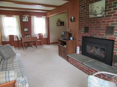 Lovely 3 BR, 2 bath home with roomy first floor bedroom with attached bath, first floor 3/4 bath/laundry combo, dedicated dining area, living area and additional family room with gas fireplace. Kitchen is open to the family room and has large work island, has all appliances conveying including dishwasher, range and refrigerator. Upstairs features a spacious bedroom and one additional bedroom with wood floors. The full basement has updated furnace and offers plenty of space for storage. The lot itself is very generous at 1.31 ac leaving room for family, kids, additional outbuildings! The back porch makes a nice spot to enjoy the roomy yard. Home used seasonally although had heat on in winter at low setting. Electric and Gas average would not be typical for consistent use.