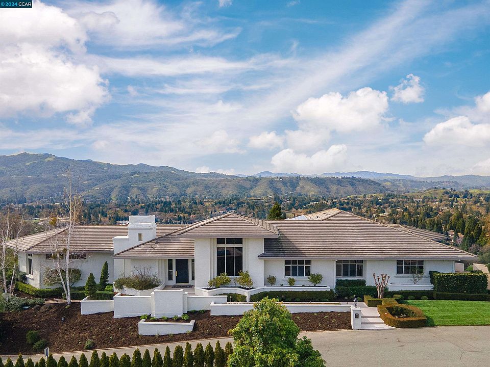 Welcome to this breathtaking estate that offers an unparalleled living experience! Upon entering this custom built home you'll be greeted by the grandeur of the open-concept floorplan, designed to maximize the captivating panoramic views of the San Ramon Valley & Las Trampas Ridge. The grand great room is a masterpiece, featuring walls of windows, high ceilings, fireplace, built-in bar, game area, & ample space for relaxation and casual living. The beautifully renovated kitchen features white cabinets, quartz countertops, center island, new appliances, butler pantry, & a huge walk-in pantry. The main level also hosts the expansive primary suite, an attached workout room, a formal office, a spacious dining room, laundry room and guest suite. This home is designed for seamless single-story living, with all main amenities conveniently located on the entry level. Two additional ensuite bedrooms are situated on the lower level. Step outside to the entertainer's paradise, complete with an infinity edge pool, patio, & spa, all overlooking the breathtaking vistas. The property also features a 4-car garage & conveniently located near Roundhill Country Club, freeways, shopping, & restaurants. Experience where every day begins with awe-inspiring views and ends with stunning sunsets.