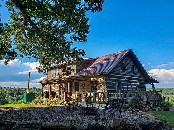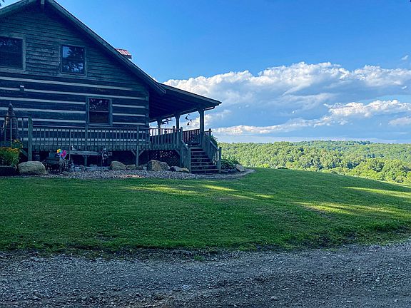 This gorgeous escape from reality is the peace we all need! A gorgeous true 3 bedroom, 2 bath Log Cabin with a wrap around front porch. Its perfectly placed up on the hill with the most stunning Sunsets and Sunrises, surrounded by almost 66 acres of land complete with an apple orchard, peach trees, nut trees, raspberries on the vine and so much more. It has new carpet throughout, new cedar lining the walls, brand new duck work and H-VAC system. It has the option to heat with a wood burning stove. The entire house has been made energy efficient. Its complete with a cell phone booster and gets great service. Verizon Jet Pack (wireless internet) is also available! It also has a 2 car detached garage, a party barn, and another large barn. It is surrounded by Wayne National Forest. Call Today and see this beauty for yourself!