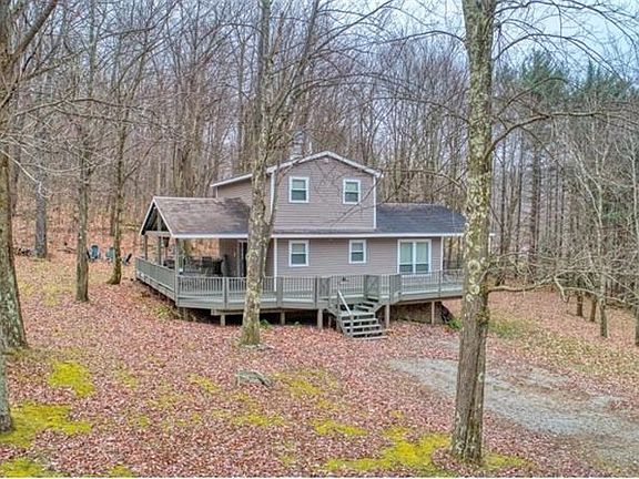 Welcome to your Mountain chalet in the Laurel Highlands! This 4 bedroom, 3 bath home sits on 1.7+ acres minutes from 7 Springs Resort and many other local attractions. Enjoy the open concept living on the main level with the spacious living room with a stone cased wood burning fireplace! Large windows throughout the home to let the natural light in and feel like you are surrounded by nature! Dining area and kitchen with oak cabinets and appliances included. Main level has a bedroom and full bath too. Upstairs you will find 3 bedrooms and a full bath and in the basement is a space to use as a bedroom or game room with a full bath. Double doors on the other half of the basement to pull in your snowmobile or other toys! Large wrap around deck great for entertaining and a hot tub! Come make this your mountain getaway!