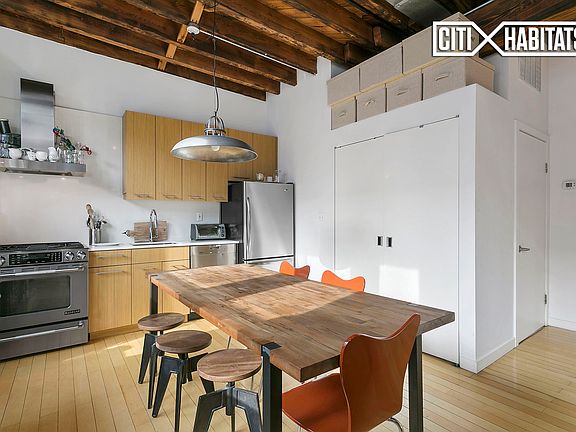 Sophia Condominium, Classic Williamsburg loft conversion. Originally built in 1915, the namesake for the Sophia Condominium is Sophia Zablowski who operated a Babka Bakery on site.This one of a kind space beams with sunlight with a total of 9 windows throughout. Details galore including exposed brick, original wooden columns, ceiling and steel beamsEndless closet and storage spaceWasher/Dryer comes installedFlexible move date required
