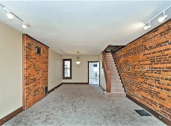 Nice brick row house with lots of character on quiet street* Exposed brick wall that runs from first floor to second. New Carpet in living room, second and third floor* Newer kitchen with tile floor and tile counter top * Tile sun room * Natural wood work * Hardwood floors in master bedroom * Gas furnace * One car garage