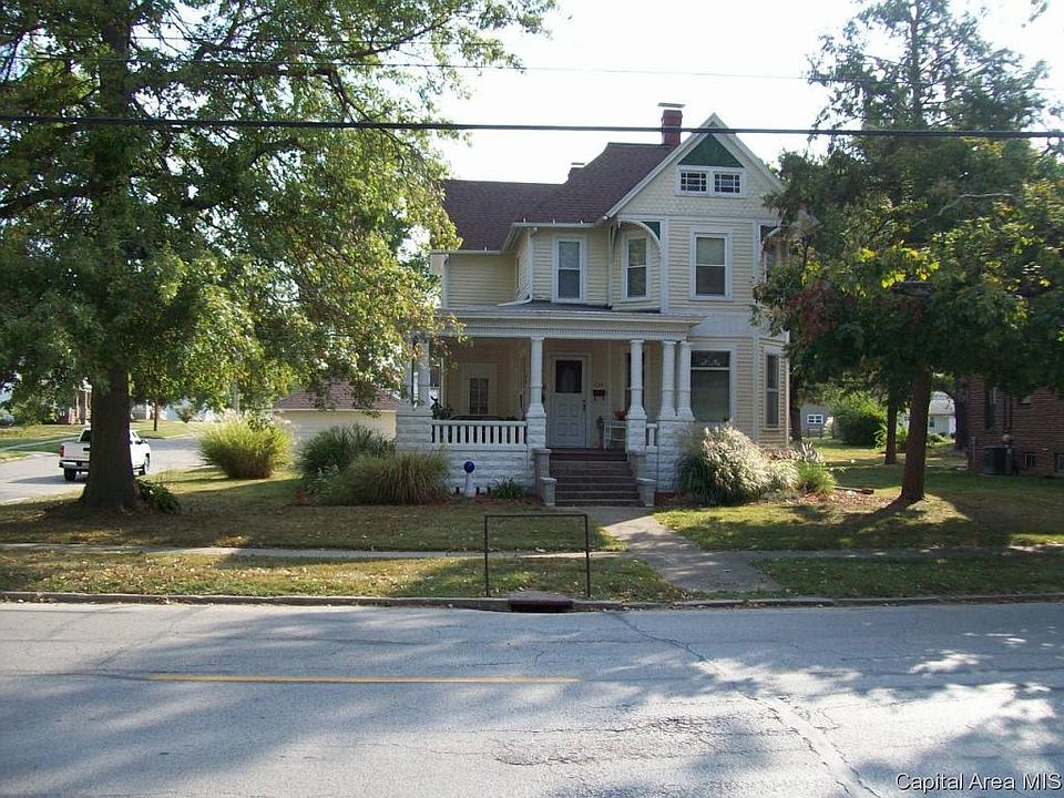 An eye-catching home in the heart of Winchester! Charm is around every corner, from the open front porch to the pocket doors and hardwood floors. There is plenty of space to make yourself at home - the main level includes a large living room, dining room, family room, kitchen, foyer, and updated bath with shower. Upstairs you'll find 3-4 bedrooms, a full bath, enclosed sunroom or office, and a kitchenette area. Amenities include - a back deck where you can relax after a busy day, stained glass, a whole house fan, high efficiency furnace, detached 2-car garage, shaded yard, and much more!