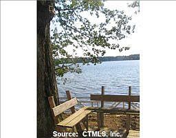 Seasonal cottage with insulated interior and exterior walls. Picturesque cove setting with magnificent views from the interior porch and deck and dock.Dock includes 24 foot gangway to 96 foot cedar dockmaster dock with 16 foot pad and flag connector. Dock $10,000+ new in 5/07. Remodeled in 2007 w/new roof (cottage & garage), all painted and fireplace rebuilt. Shed built in 2009. 1248 sqft of one floor living (plus a ladder accessed loft). Stone fireplace and open floor plan. Zehender electric towel warmer/radiators for each bath. Details galore. Soaring wood cathedral ceilings and hardwood floors and French doors and built-in bookcases and plantation shutters and window seats. Lovely grounds and plantings and plenty of room for parking...a real bonus on the lake. Lease increases 5% yearly.Land lease expires 2017.Dramatic open beamed ceilings thru kitchen & DR & LR & porch. Now 3 BRs & 2 baths plus loft & mudroom.Stone fireplace & waterside porch & deck & dock. Built-ins & wood floors & plantation shutters.